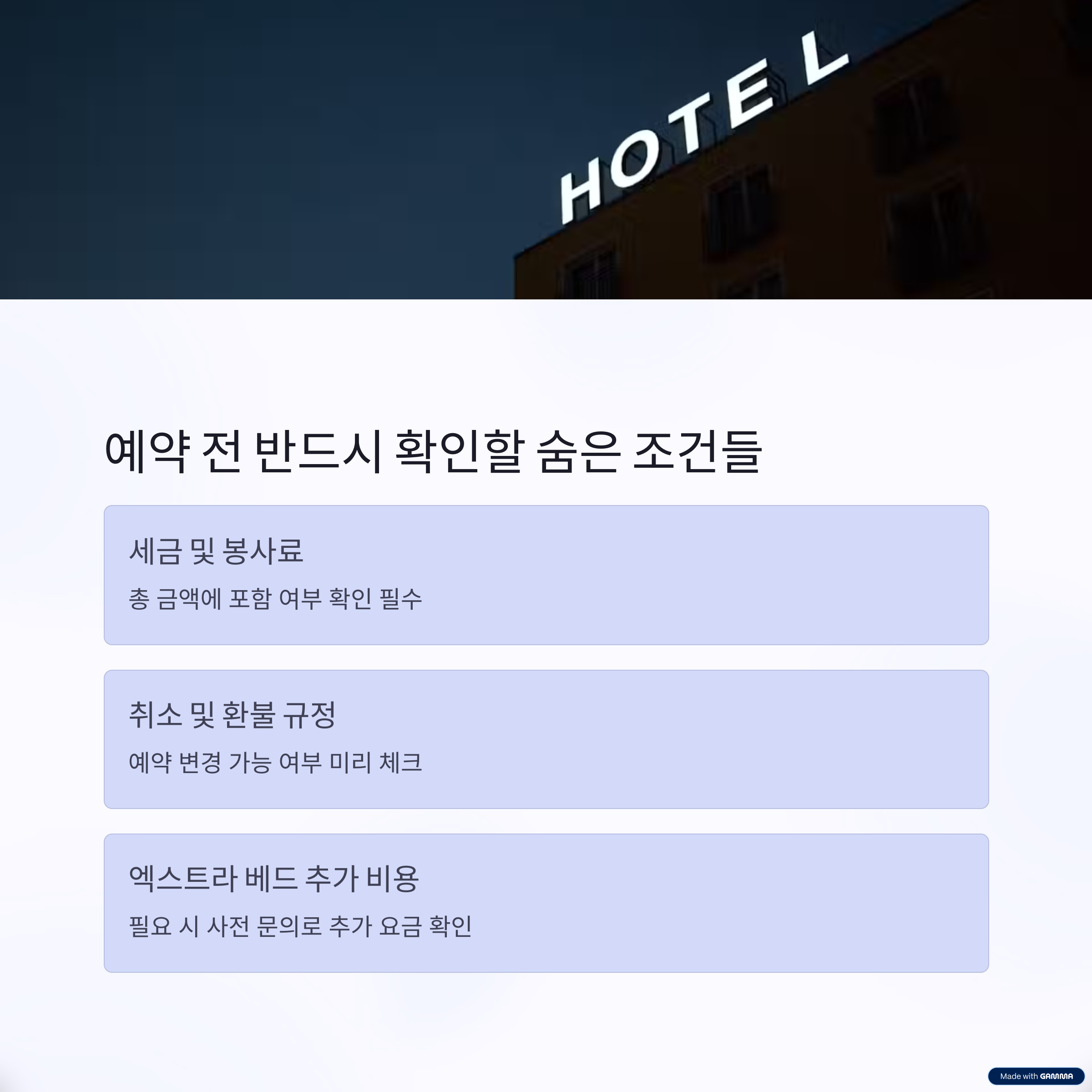 둘째, 주차료, 조식 포함 여부를 사전에 꼭 체크해야 합니다.