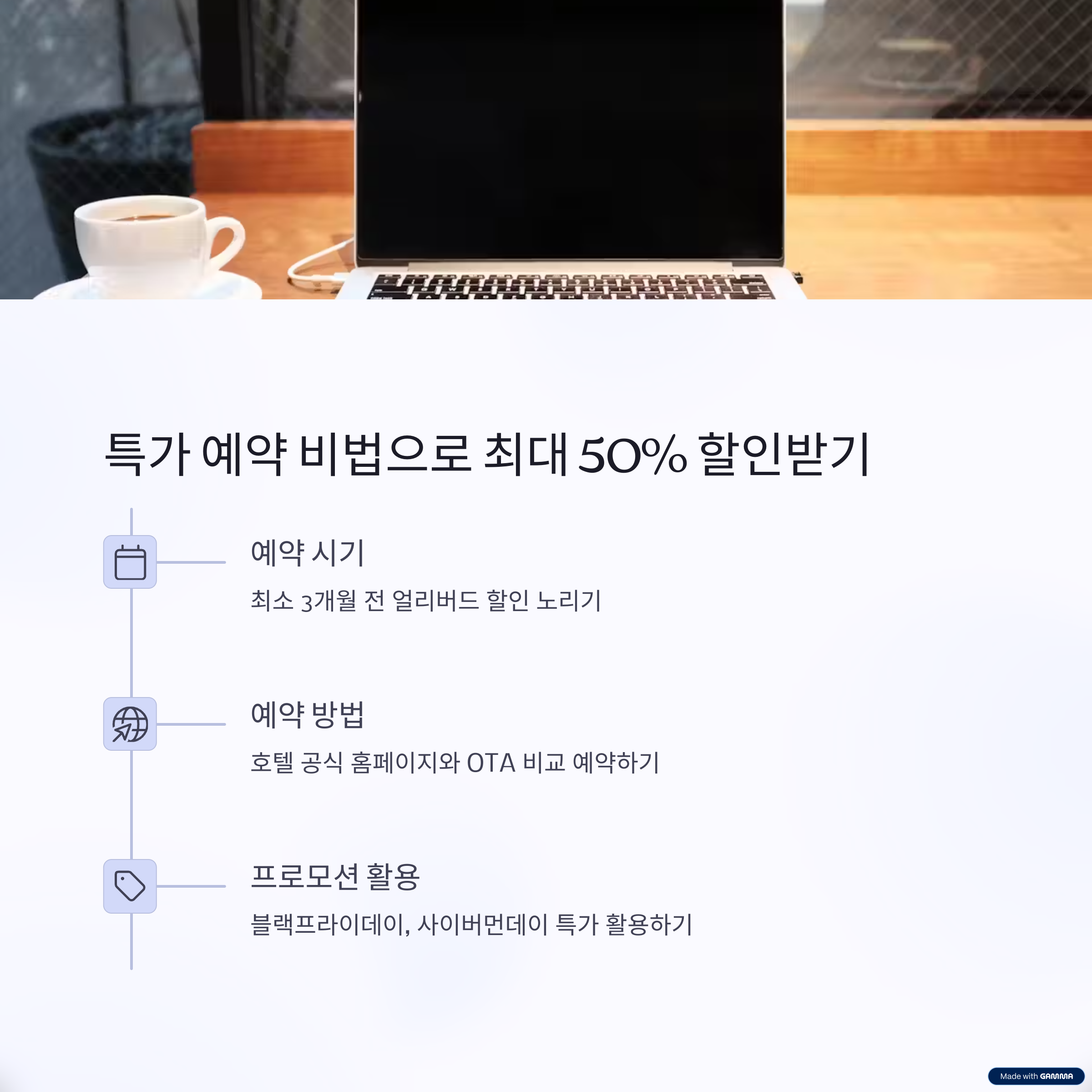 첫 번째, 예약 완료 후 호텔에 직접 연락해 업그레이드 요청해보세요. 특별 요청이 의외로 잘 반영되는 경우가 많습니다.