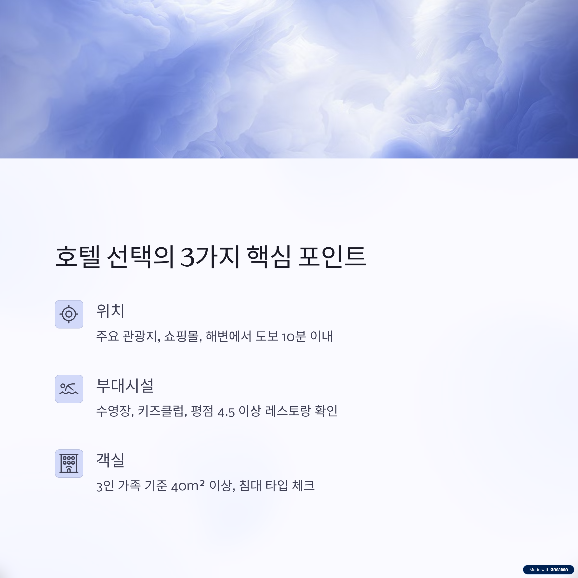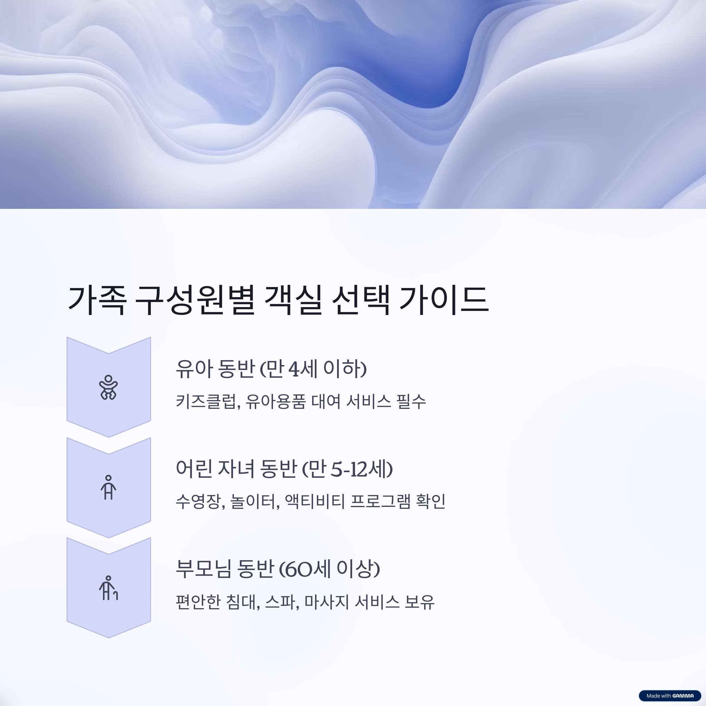 또한, 객실 크기나 침대 타입도 꼼꼼히 체크해야 가족 모두가 편안하게 머물 수 있어요.