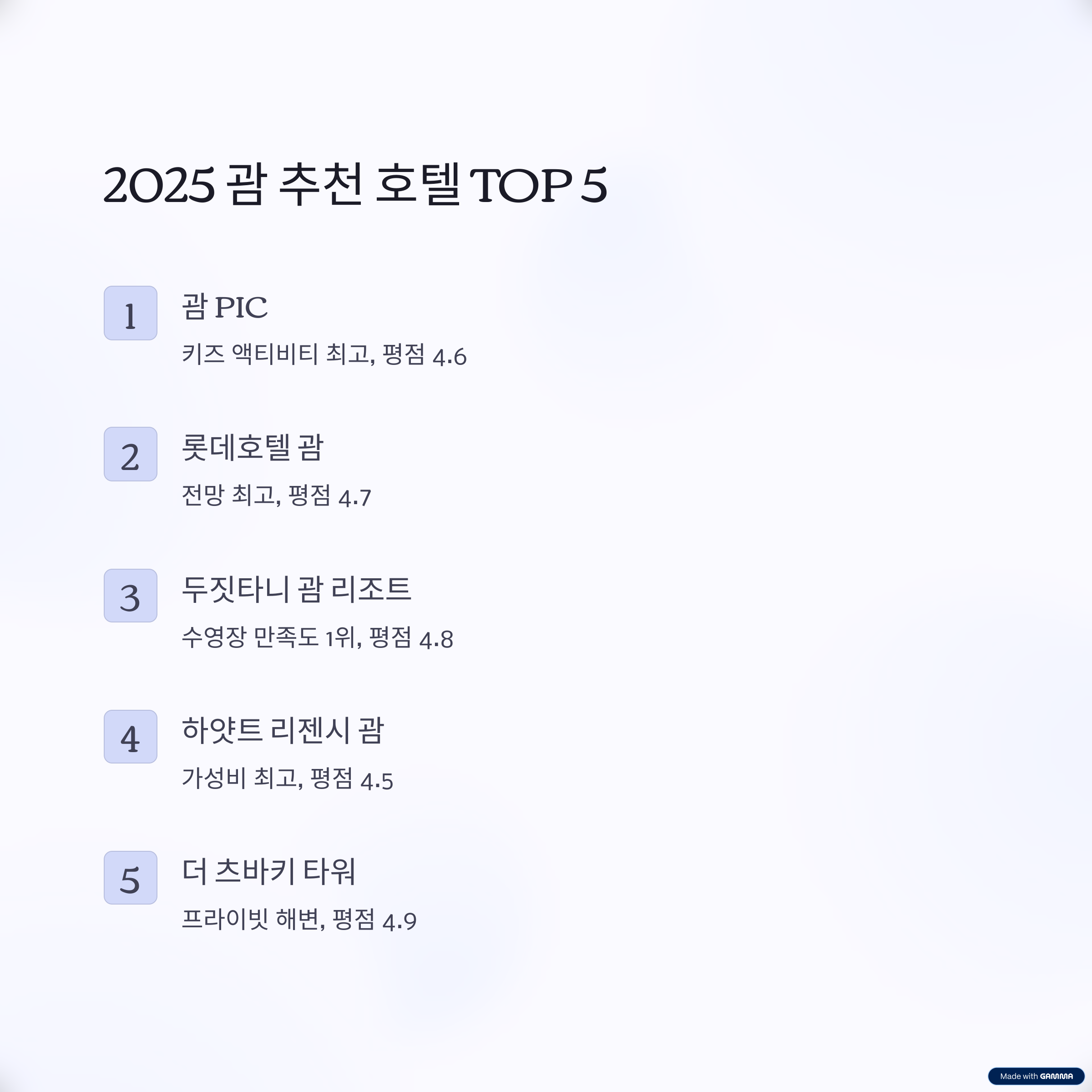 "괌 가족여행 호텔 고르는 데 어려움 느끼셨나요?