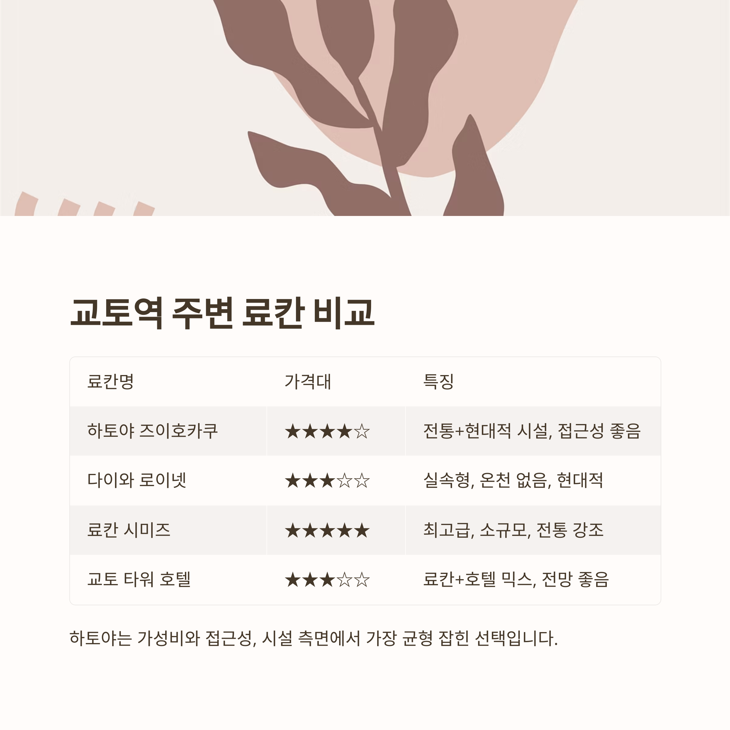 위치가 좋으면서도 조용한 료칸을 찾는다면, 분명 특별한 추억이 될 거예요. 😊
