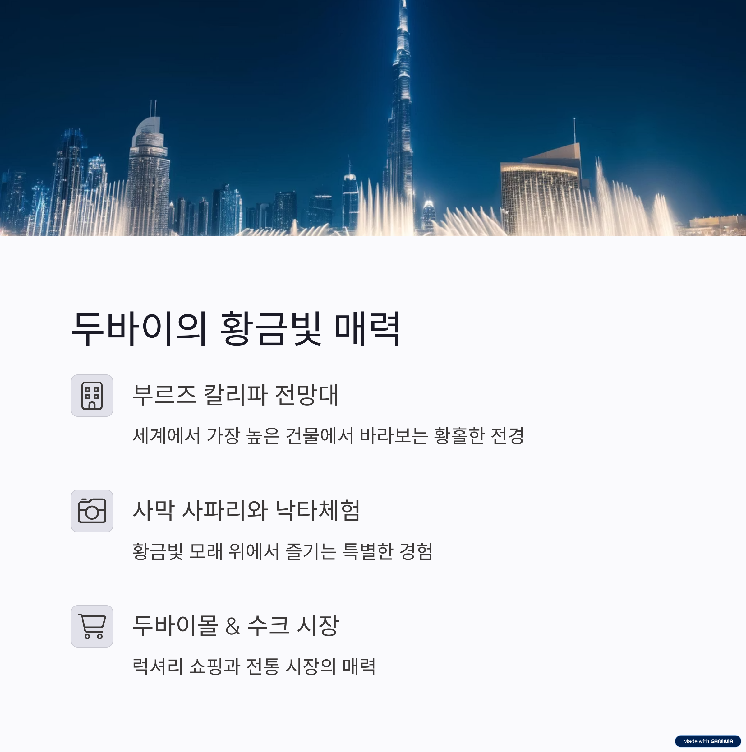 두바이 여행 포인트 - 사막, 쇼핑, 럭셔리 체험 총정리