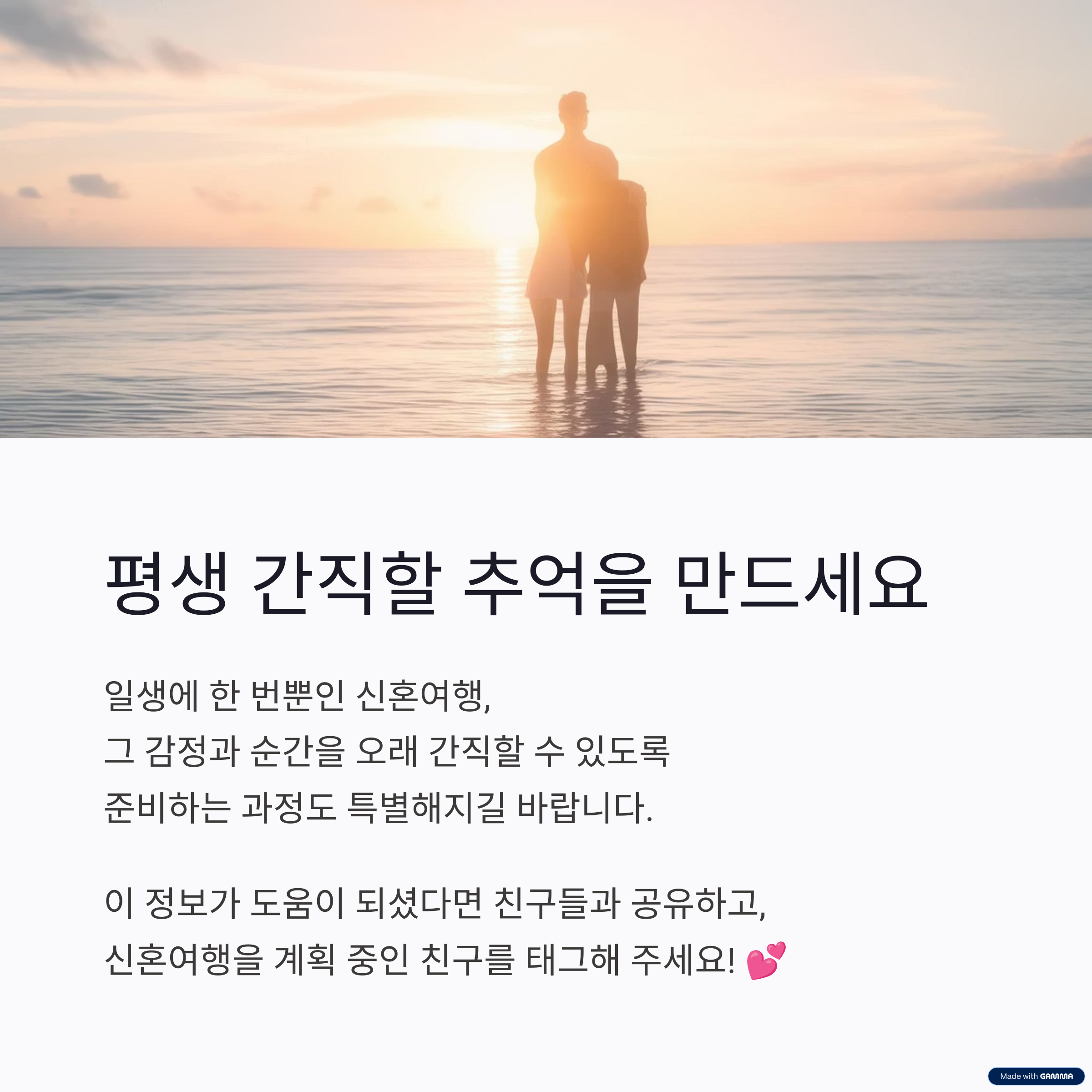 신혼여행에서 중요한 건 "기억에 남을 순간"이잖아요?