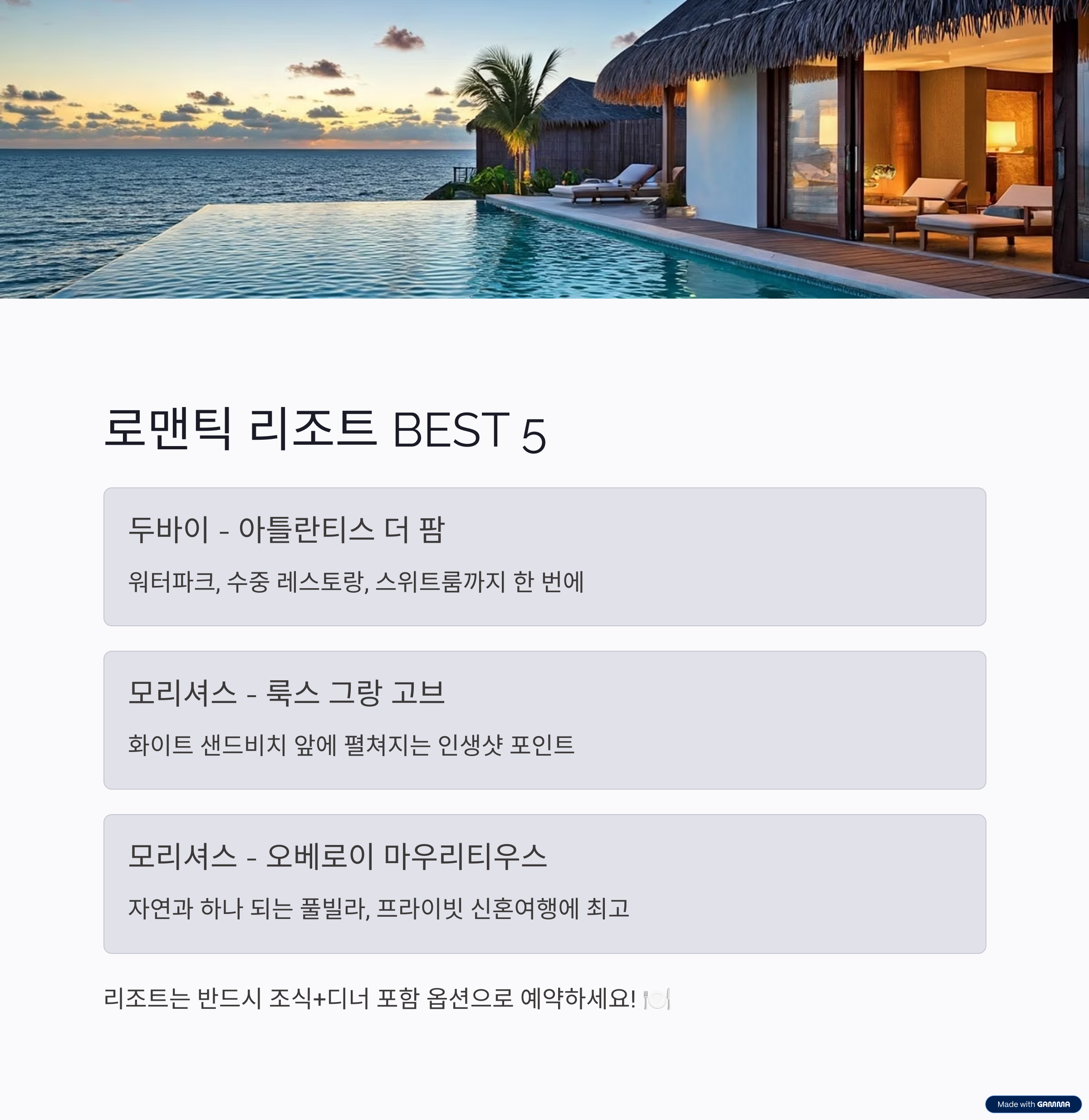 추천 숙소 BEST 5 - 허니문에 딱 맞는 로맨틱 리조트