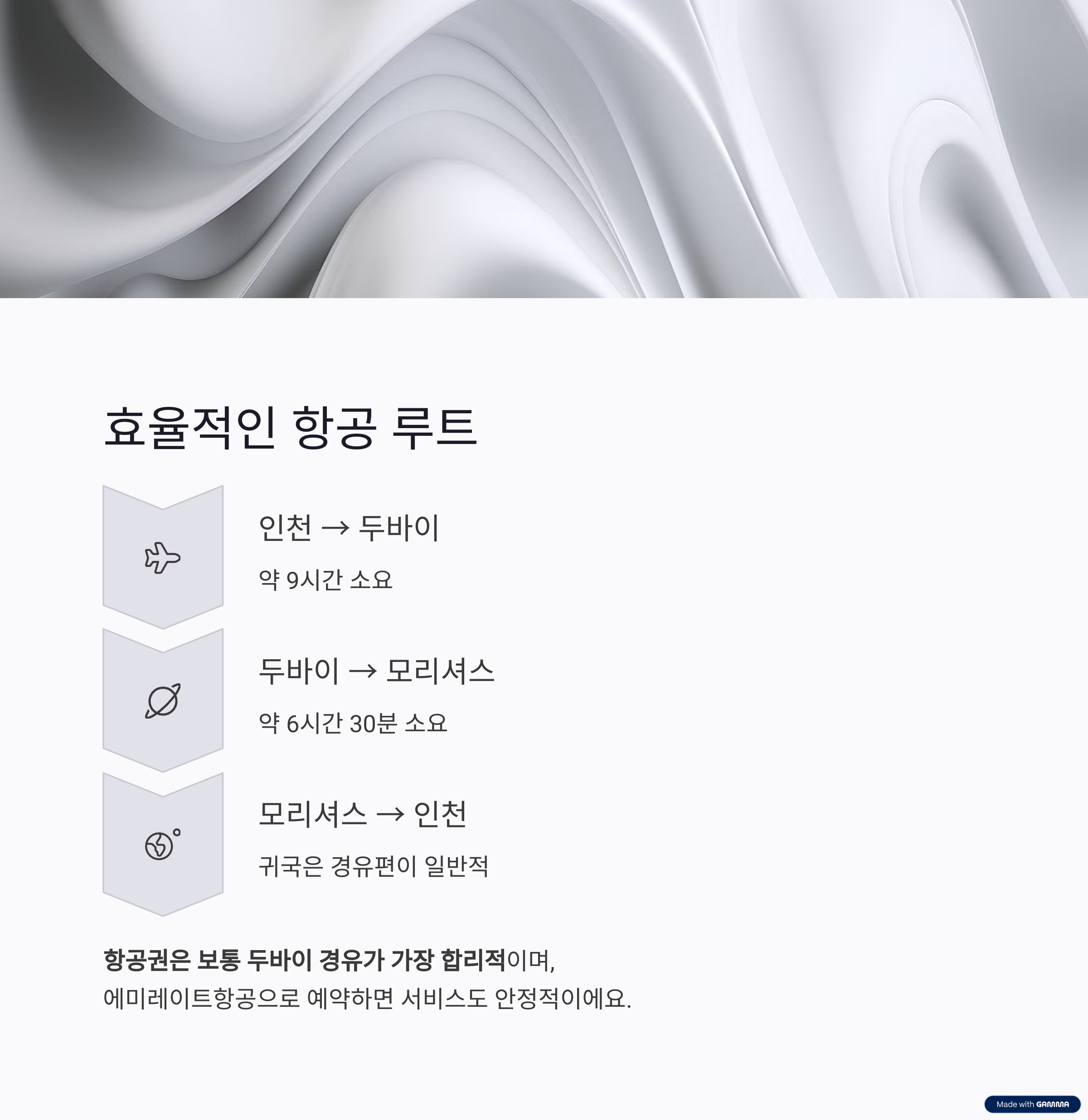 • 모리셔스 → 인천 (귀국은 경유편이 일반적)