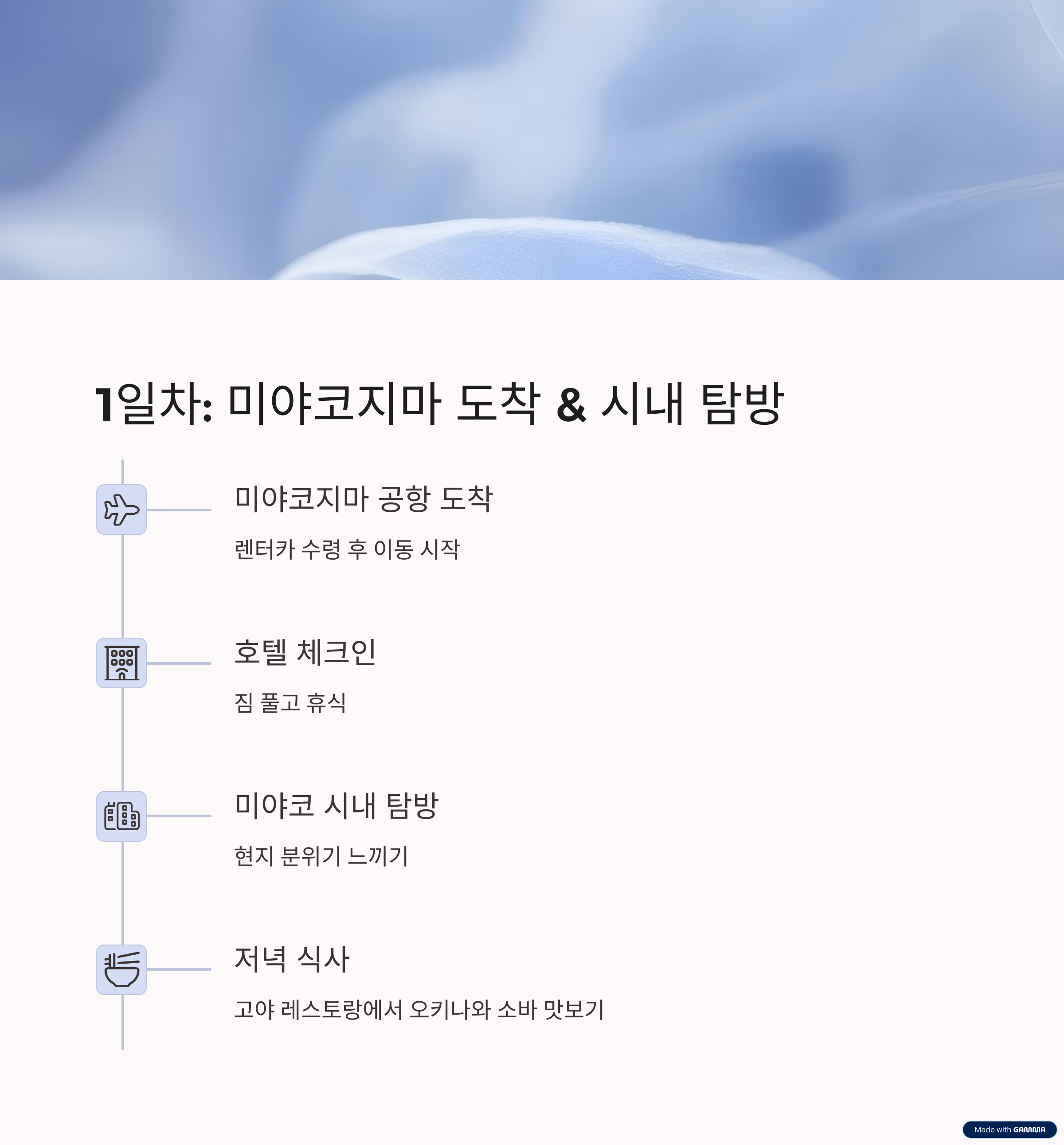 1일차 일정 - 미야코섬 도착과 시내 탐방