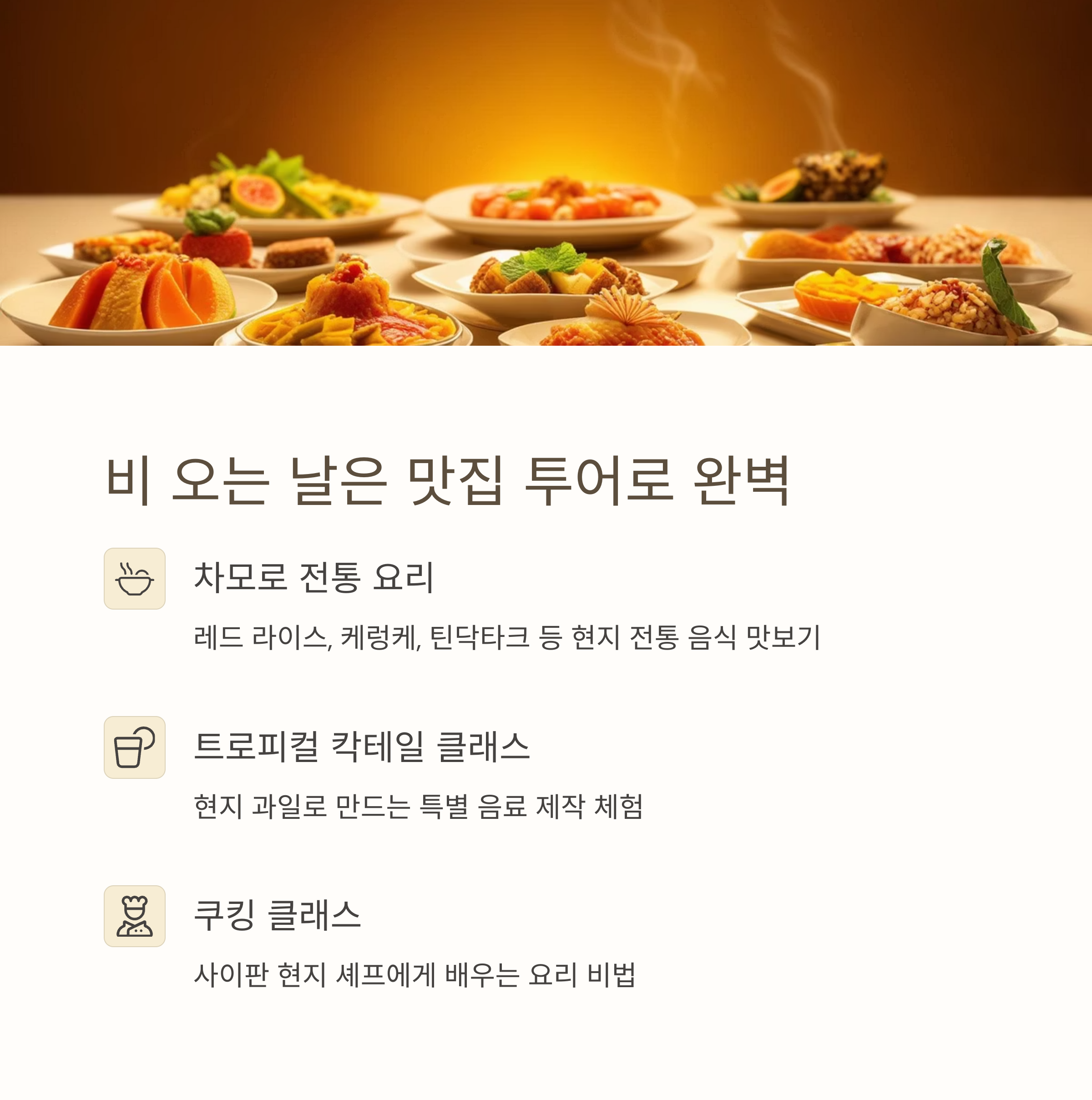 비 소리 들으며 맛보는 현지 음식이 더 특별하게 느껴져요 🍲