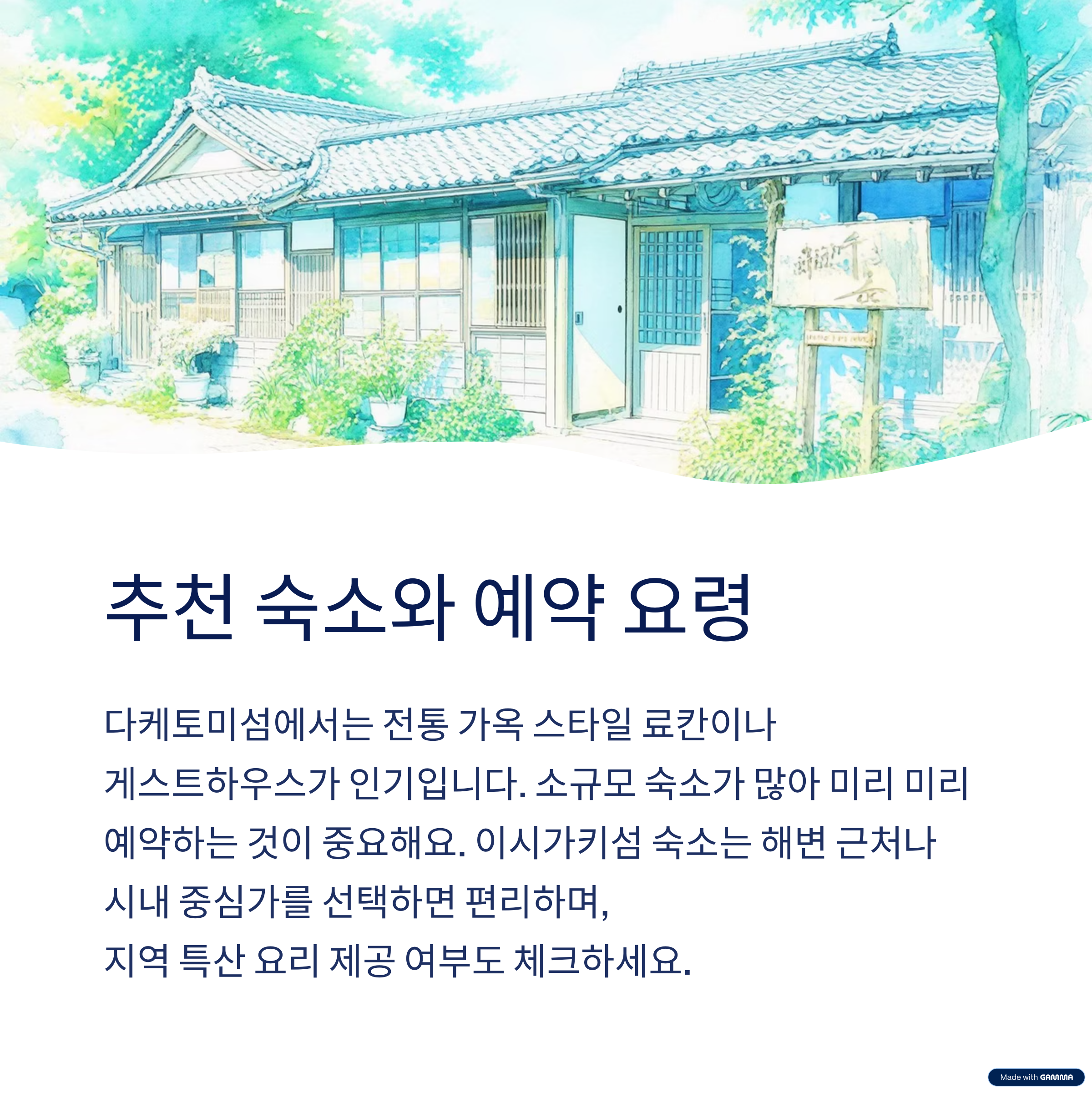 진짜 다케토미를 느끼고 싶다면 하룻밤은 꼭 머무세요.