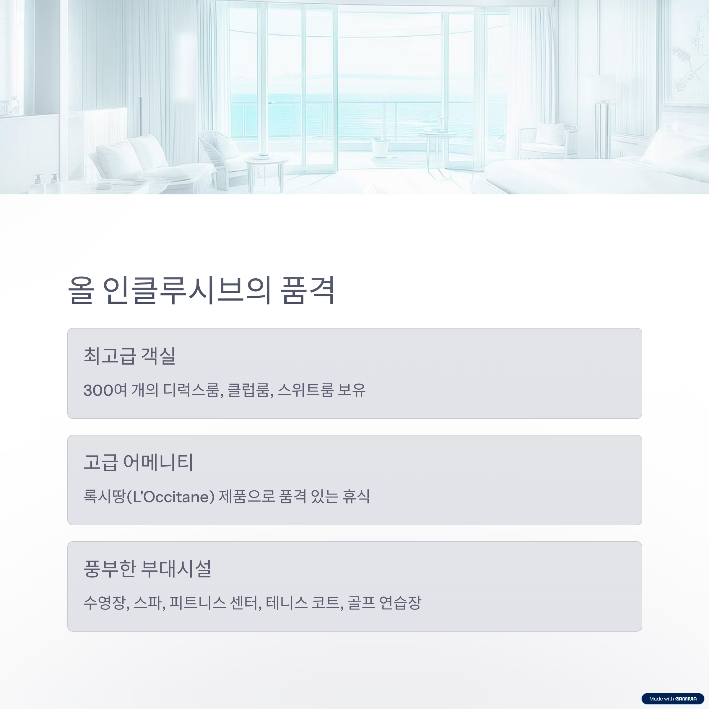 객실과 시설 소개 - 올 인클루시브의 품격