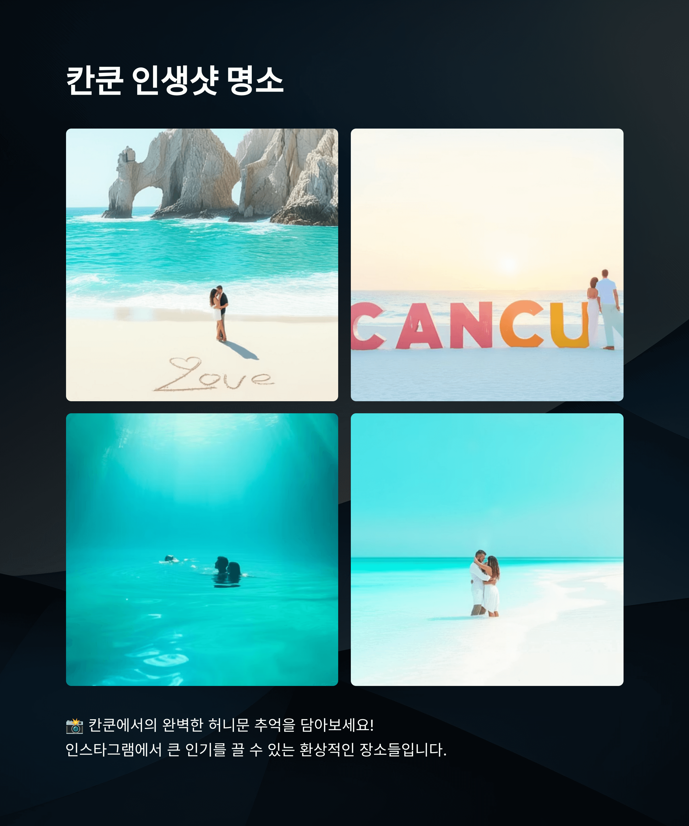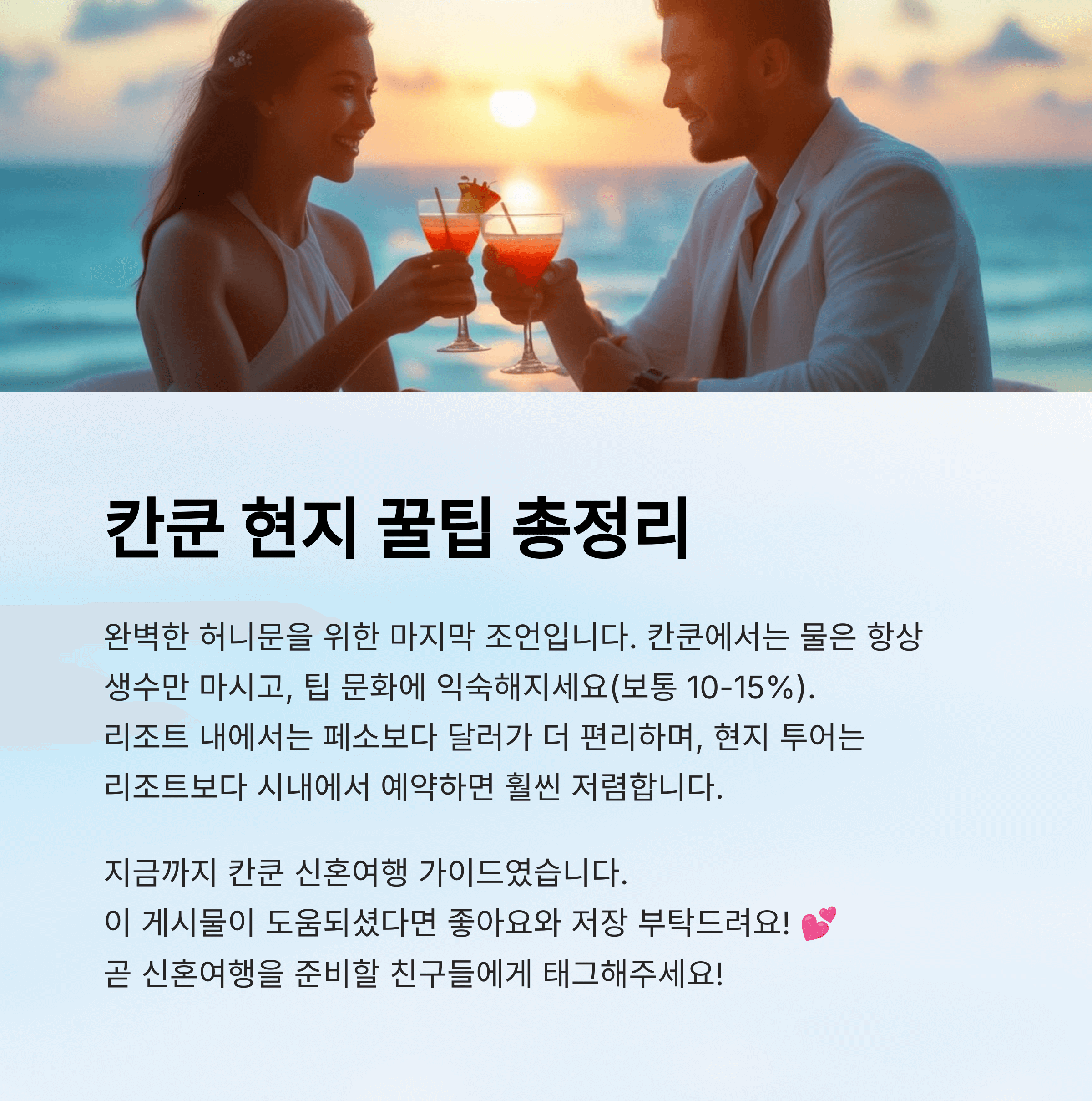 칸쿤 신혼여행 완전 정복 가이드"단 하나뿐인 허니문을 평생 기억에 남길 수 있을까?"뉴욕의 도시 감성과 칸쿤의 휴양을 모두 누릴 수 있다면,그건 더 이상 꿈이 아닌 최고의 선택이 됩니다.꿈