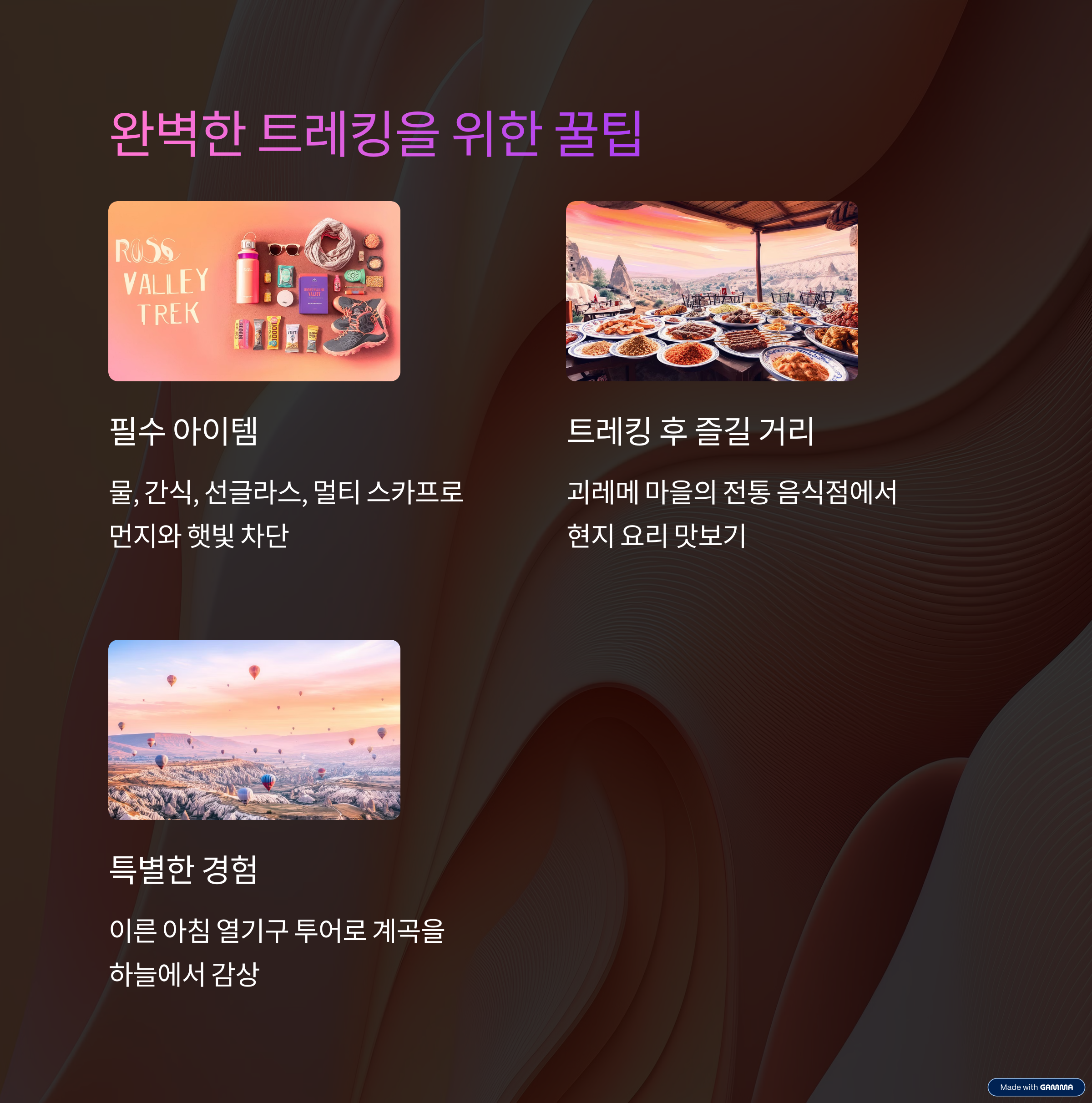 세 번째, 열기구 투어를 다음날 새벽에 예약해 트레킹과 열기구를 모두 경험하기