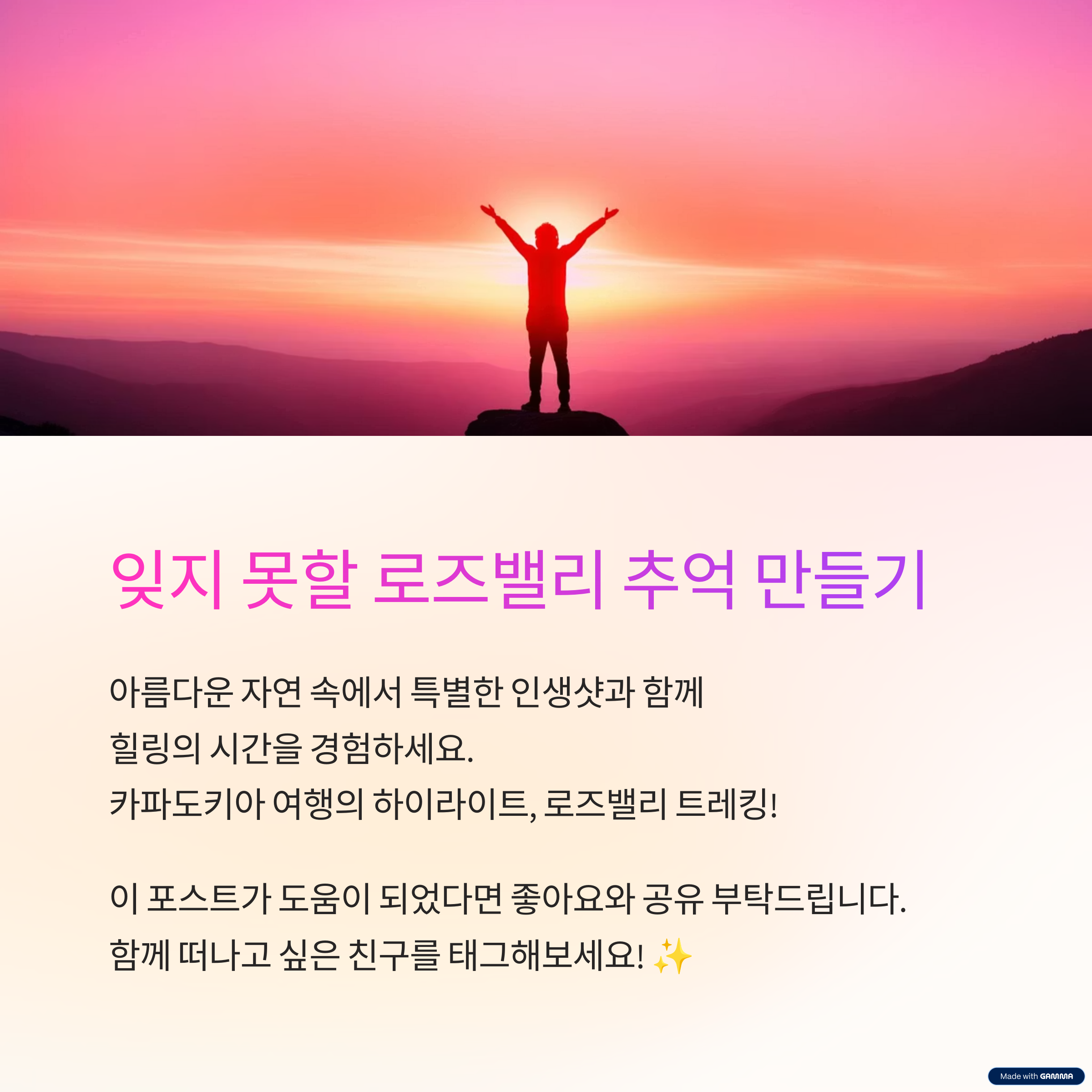"준비가 철저하면 더 안전하고 여유로운 로즈밸리 트레킹을 즐길 수 있습니다."