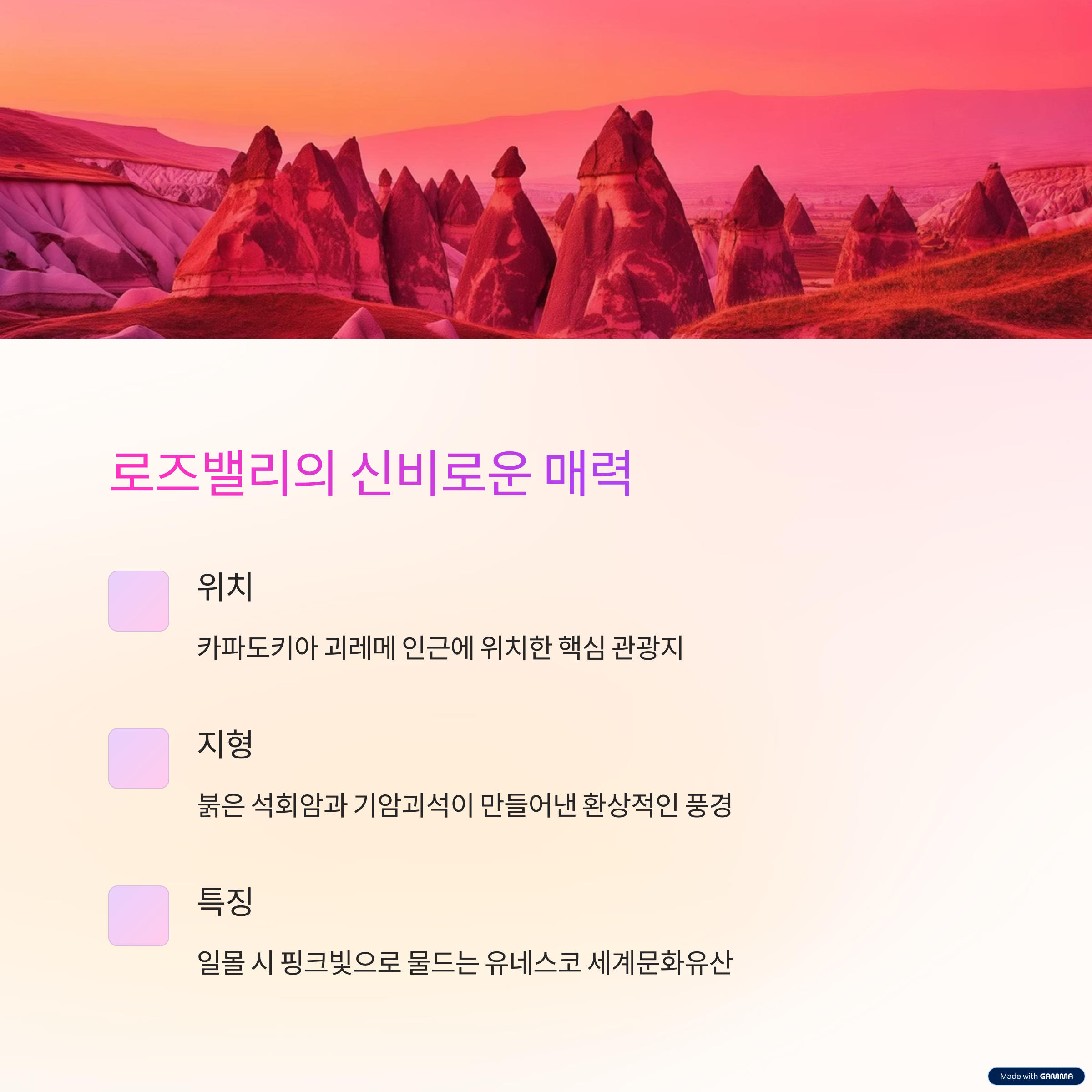 로즈밸리는 카파도키아 지역에 위치한 아름다운 협곡입니다.