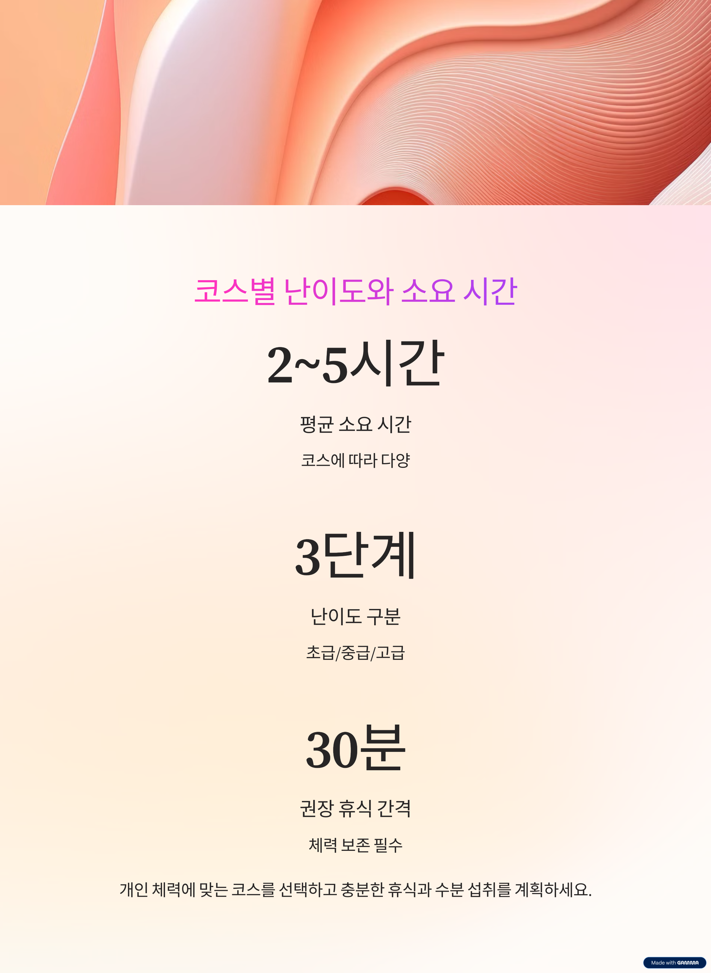자신의 체력과 취향에 맞춰 코스를 선택하는 것이 중요합니다.